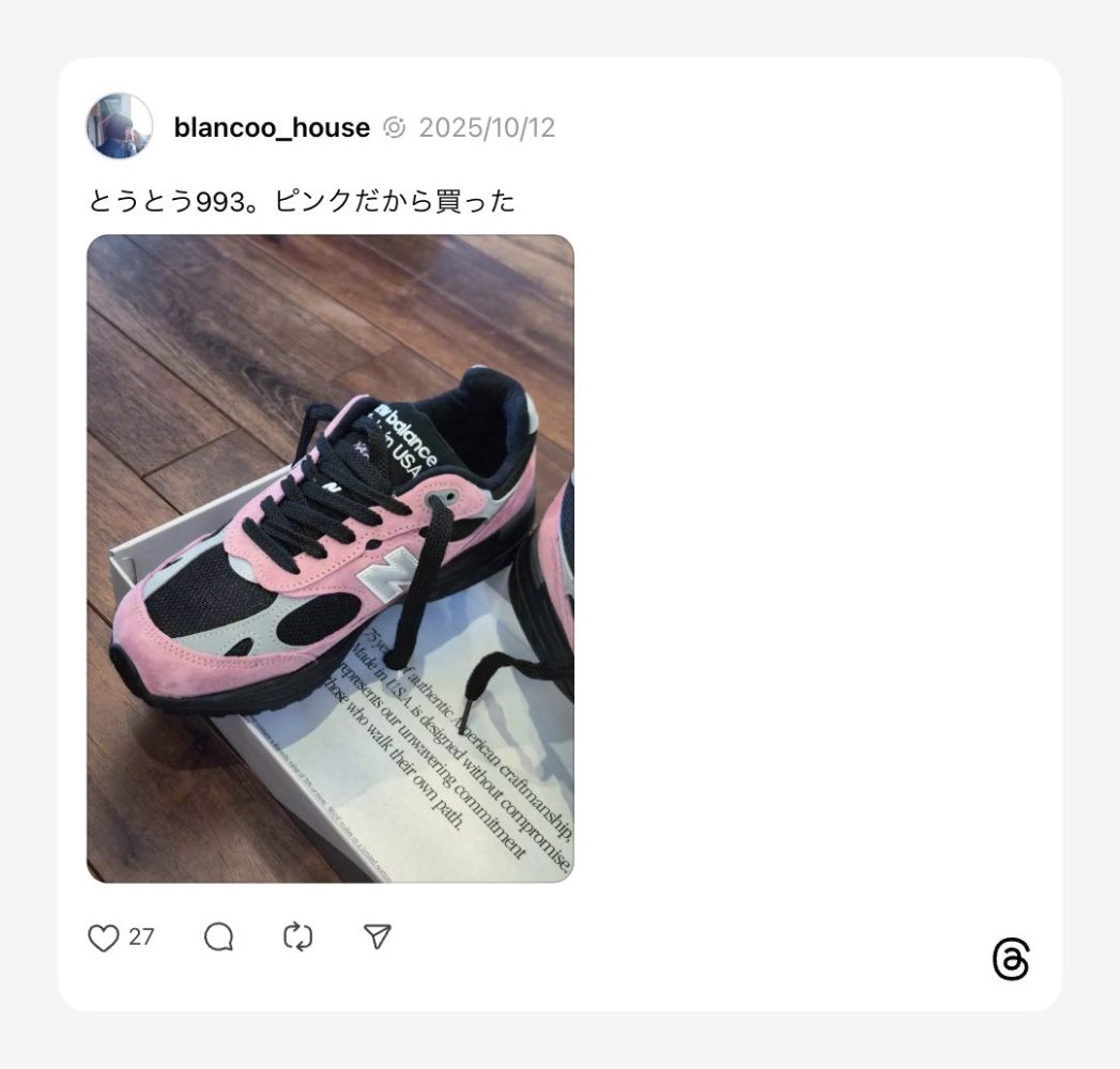 セール価格になったら、色違いのライトブルーも買うんだ!!と思っているくらいのお気に入りのピンクの993。